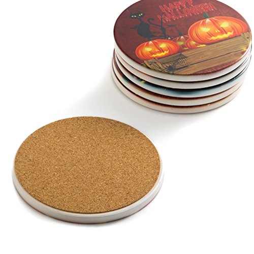 Coasters for Drinks for Bar, Holiday Party, Porcelain and Cork Bottom, Set of 6