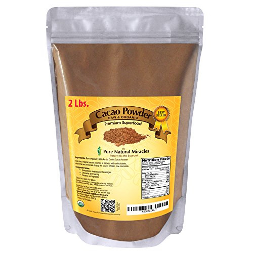 Premium Supernutrition Superfood Satisfy chocolate cravings and support health and longevity with the best Arriba Nacional, Criollo cocoa powder from Ecuador; our premium cacao is 100% pure, raw and unroasted, natural, non alkalized, organic and packed with vitamins, minerals and antioxidants. Contains Anandamine, the Bliss Chemical that makes us feel good, Omega 6 Fatty Acids and Essential Amino Acids. Contains serotonin and tryptophan. This raw cacao powder is stone ground and unprocessed and contains no added sugars, retaining its full bodied nutrition profile. Think dark chocolate, but healthier. More antioxidants than red wine, green tea and blueberries combined. David Wolfe from Longevity Warehouse and Mark Hyman highly recommend adding these vital nutrients to your daily health regimen. Avoid trans fat by eating these raw. We stand behind it with a 100% Manufacturers Lifetime Guarantee if you are not completely satisfied. Pure Natural Miracles Organic Raw Cacao Powder instantly transforms desserts, smoothies and other treats into guilt free bliss. Rejuvenate yourself now. Order now and click the button up top, to start living more healthy and enjoy the power of real raw organic chocolate.