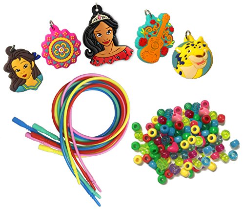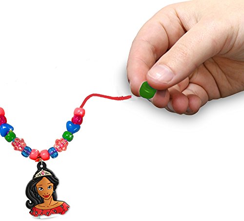 Design your very own Elena of Avalor necklaces with this fun easy to use set! simply slide the beads and character charms through the silicone necklaces. Mix and match the colorful beads and character charms to create new looks over and over again! everything stores neatly inside the plastic carry case which includes a sturdy handle for on the go fun.Feature