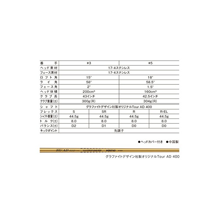 원본상품명: KATANA GOLF(カタナゴルフ) VOLTIO IV FW TOUR AD GOLD フェアウェイウッド グラファイトデザイン社製オリジナル Tour AD 400 カボンシャフト