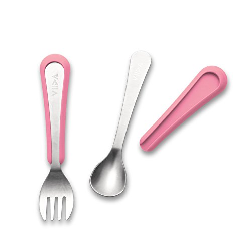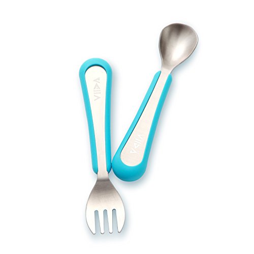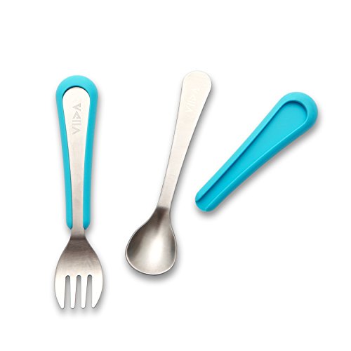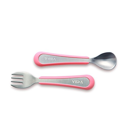 -. Title : VIIDA Soufflé Antibacterial Stainless Steel Fork and Spoon Set - Toddler Fork and Spoon Set - Stainless Steel Children Tableware