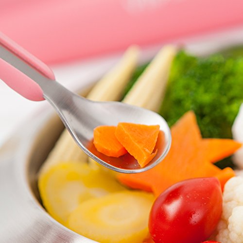 -. Feature : ANTIBACTERIAL STAINLESS STEEL - Non-toxic, corrosion resistant, antibacterial 304L (18/8) stainless steel is 99% resistant to Staphylococcus aureus and Escherichia coli / TOXIN FREE - Free of BPA, DEHP, PVC, melamine and lead / EASY AND SAFE - Rounded edges for safety, removable outer sleeve lets the set double as a fork and spoon for big kids and grownups / HANDY DESIGN - Bite-size for children, specially designed oversized handles for easy gripping, handles curved to place on plate's rim / HIGH QUALITY - High quality stainless steel for a extra long lifespan