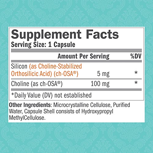 Silicon (as Choline-Stabilized Orthosilicic Acid) (ch-OSA), Choline (as ch-OSA), Microcrystalline Cellulose, Purified Water, Capsule Shell (consists of Hydroxyproply MethylCellulose).