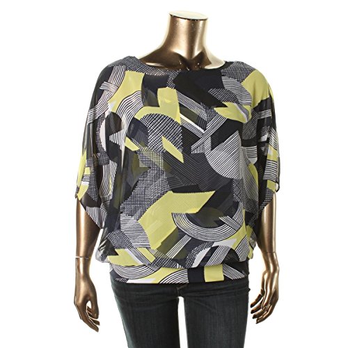 alfani women printed blouson top plous size 3x retro line lime polyester;lining:polyester/spandex machine washable high neckline pullover styling butterfly sleeves allover print blouson fit lined banded hem hits at hipFeature