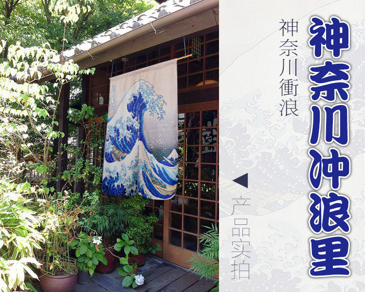 日本浮世绘神奈川冲浪里日式创意门帘夏 隔断帘厨房卧室布艺挂帘