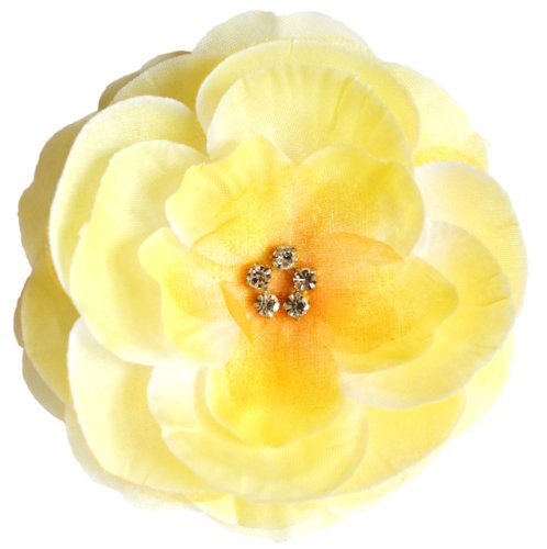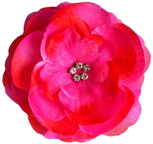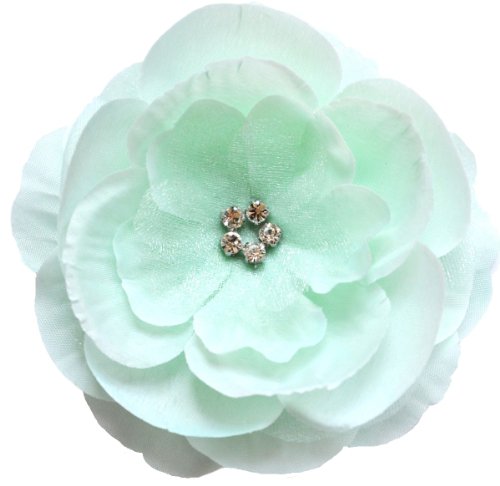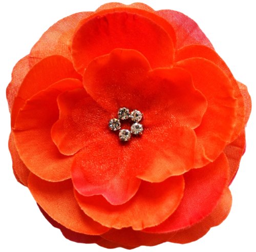 - Feature : 3.5" silk and organza flower hair clip. / Attached to a 1 3/4" alligator clip with added no slip strip / Center of the flower sparkles with 5 rhinestones / Many colors available