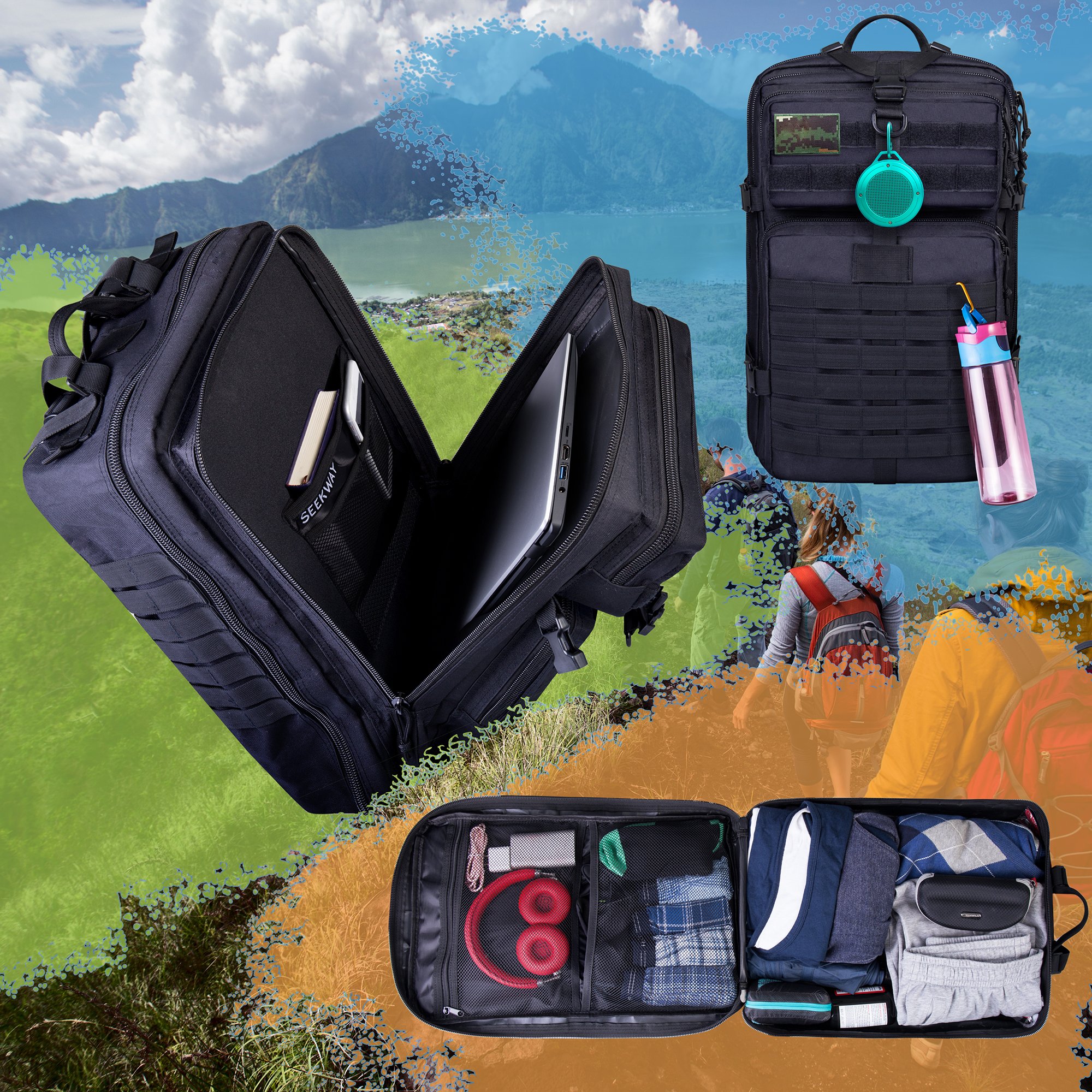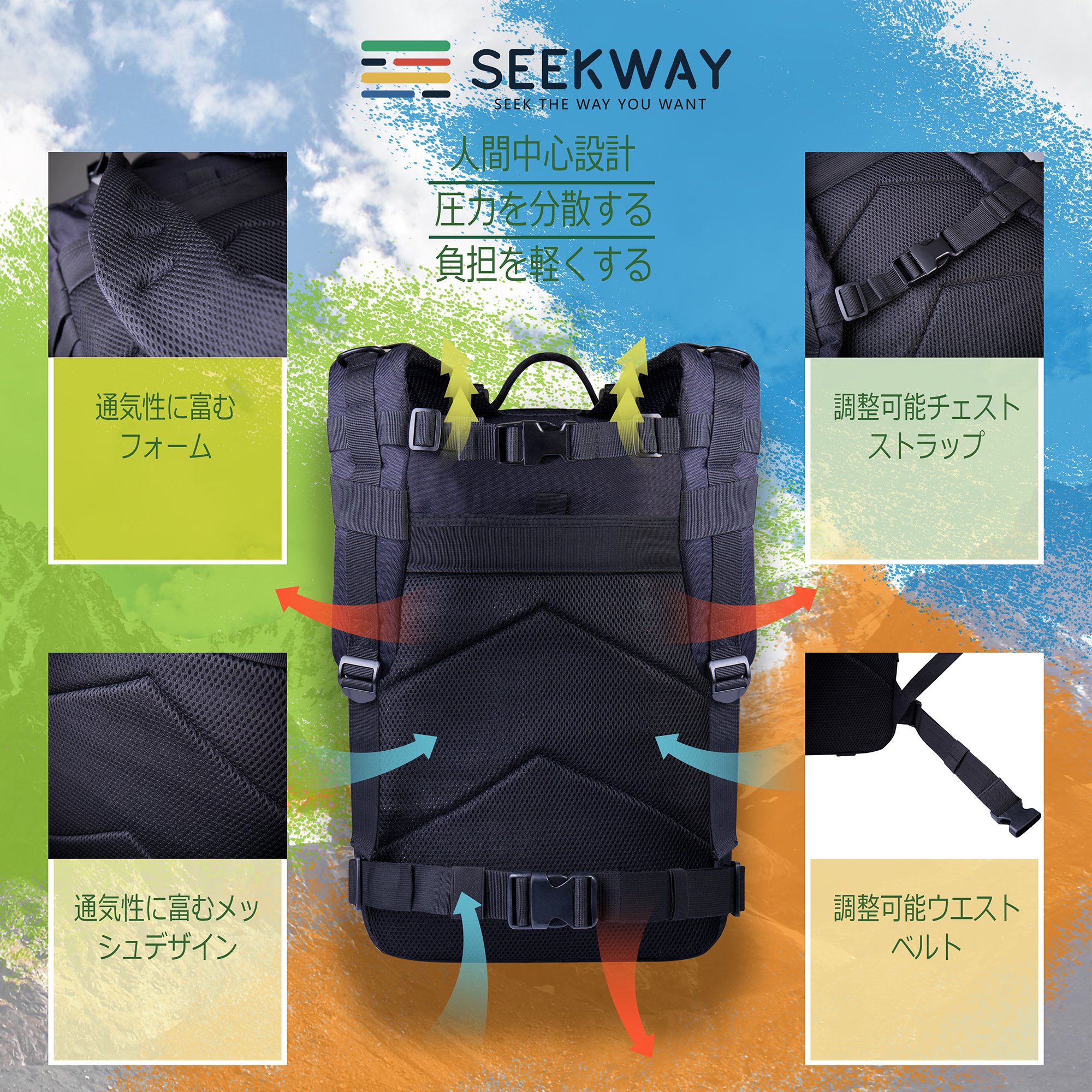 SEEKWAY mountaineering backpack has large capacity, functionality, abrasion resistance, waterproofness, breathability, human centered design, pressure can be dispersed, burden can be balanced.