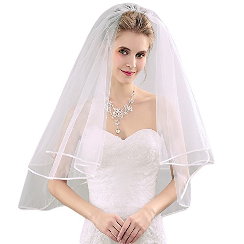 (AIBIYI)/Accessories/Scarves/DIRECT FROM USA/AIBIYI Short 2 Tiers Bridal Wedding Veils With Ribbon Edge Elbow Length AV30