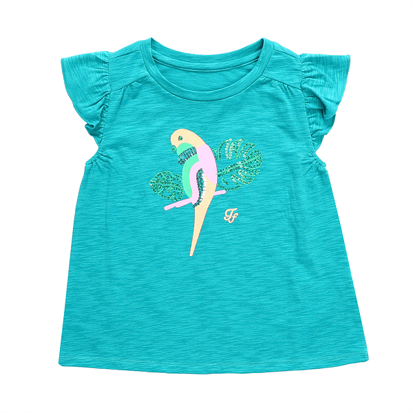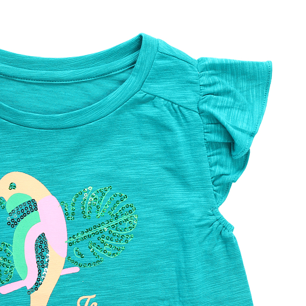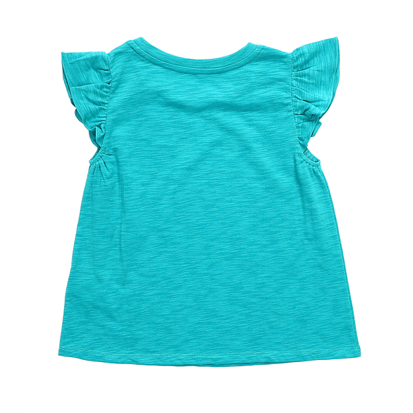 어깨를 살짝 덮는 프릴장식이 있어 여성스러운 느낌이며 팬츠,스커트 모두 코디가 용이한 티셔츠입니다.
