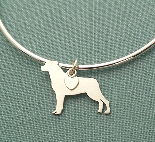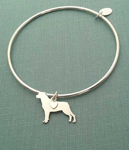 -. Title : .925 Sterling Silver Rottweiler Dog charm Bangle Bracelet