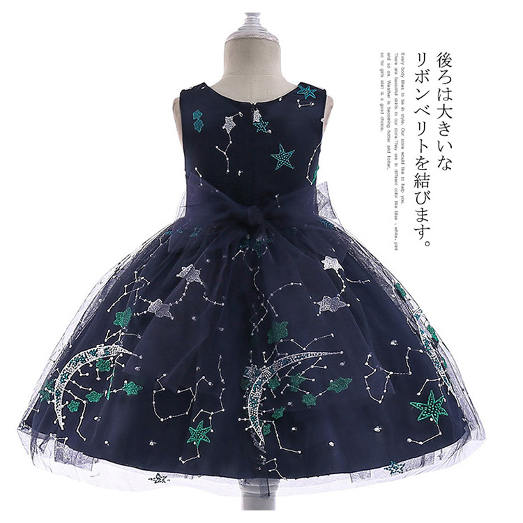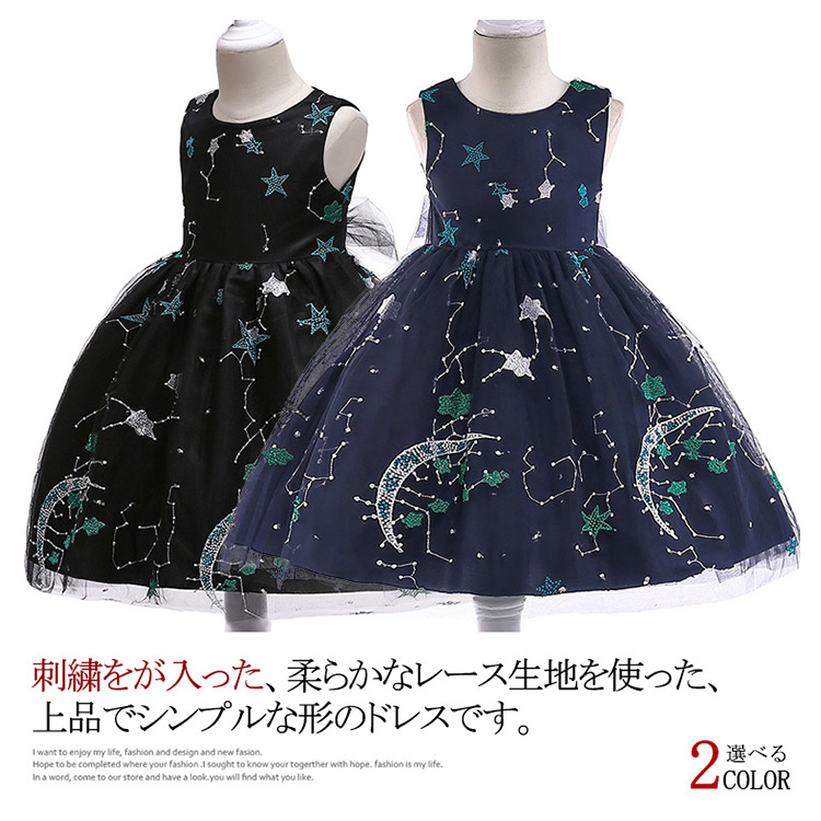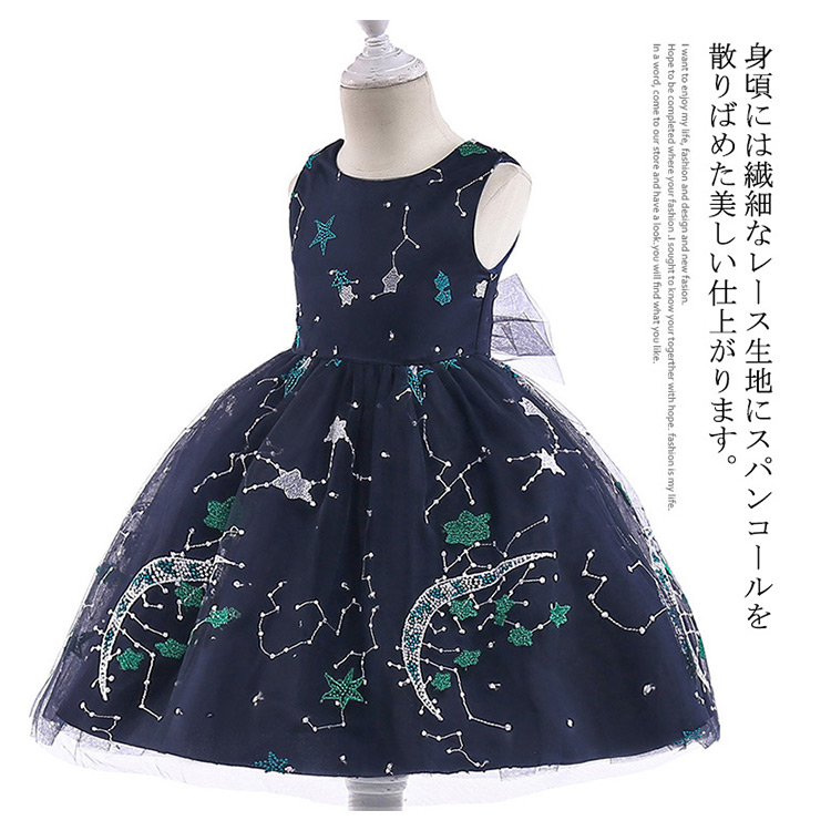 | 刺繍をが入った、柔らかなレース生地を使った、上品でシンプルな形のドレスです。後ろは大きいなリボンベリトを結びます。身頃には繊細なレース生地にスパンコールを散りばめた美しい仕上がります。誕生日プレゼント、写真撮影、入学式、入園式、卒業式、卒園式、クリスマスなどのシーンで大活躍です。 | |