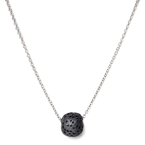 Hathaspace Calm Lava Stone Diffuser Necklace, 18" Italian Sterling Silver Box Chain w/ All Natural Organic Black Lava Rock Pendant for Essential Oils,...