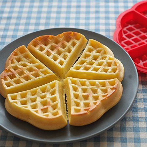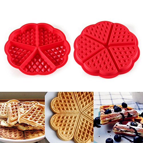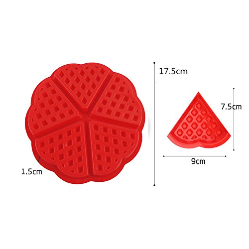 2Pcs Waffle Baking Mould Pan Heart-shaped Silicone Cake Silicone Mold Reusable Round and Square Baking Tools Kitchen Accessories Supplies by Zolove (Red)