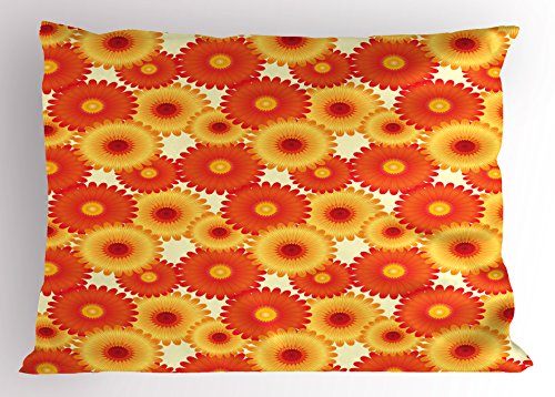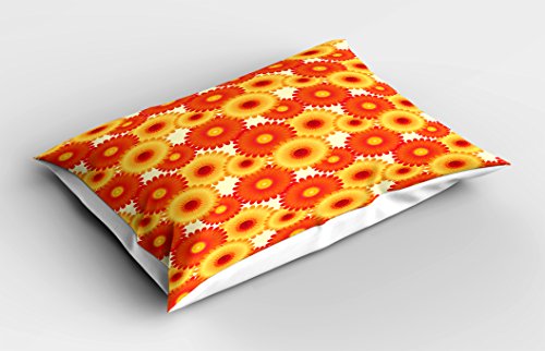 (Ambesonne)/Bedding Bath/Bedding/DIRECT FROM USA/Orange Pillow Sham by Ambesonne, Gerbera Flowers Petals in Graphic Style Vibrant Summer Nature ...