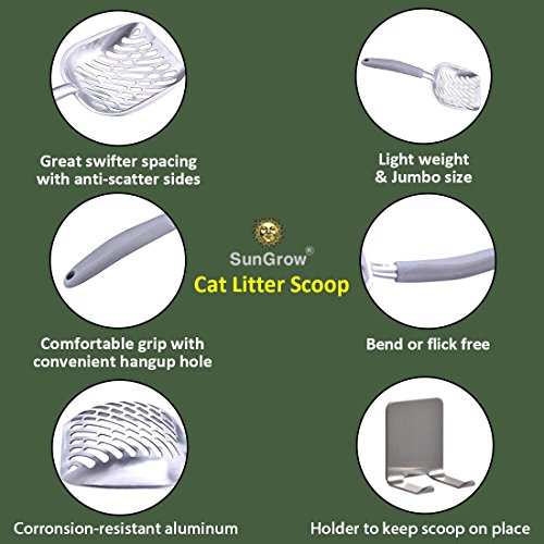 In a cat lover's home, don't you think that the Jumbo SunGrow Cat Litter Scoop makes a 'purr-fect' accessory to last you alongside your feline friends? Cast from a superior, rust-resistant, industrial grade steel that is also stainless and corrosion-resistant, add it to your shopping cart today. Your cats will love it as much as will you! 0