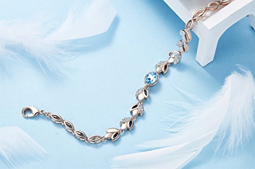 -. Title : FAPPAC 18k Rose Gold Plated Crystal Flower Link Bracelets Enriched with Swarovski Crystals, 6.5+1" Ext