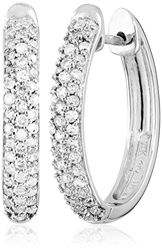 -. Title : 10k Gold Oval Pave Diamond Hoop Earrings (1/2 cttw, H-I Color, I2-I3 Clarity)