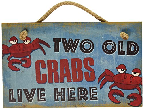 New Vintage Wood Hanging Wall Sign Two Old Crabs Live Here Distressed Plaque Cozy Beach Cottage Decor Art