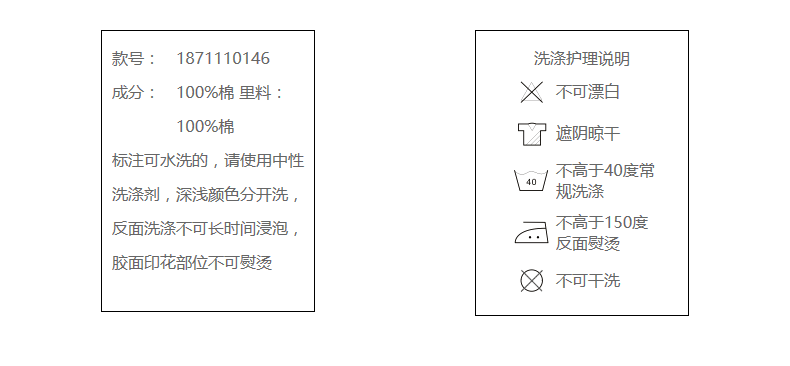 * 请不要使用漂白剂及长时间浸泡,清洗后,调整衣型进行晾晒,避免阳光直晒,以免出现变色情况.