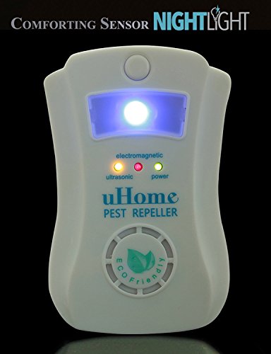 -. Brand : uHome -. Feature : DRIVE PESTS OUT: uHome Pest Repeller uses highly-effective ultrasonic frequencies, being extremely irritating to rodents and insects thus causing them to scramble to find a peaceful area, and will be forced to leave your home. The variable technology frequency waves ensure that pests do not get immune to the sounds. Your home will be free of all insects and rodents for a fraction of Monthly Pest Control Treatments. / HUMANIZED LIGHT SENSOR NIGHT LIGHT: The device has a special light sensor night light. When first connected to the power source, the night light is in light sensor control mode. That can be turned on by pressing the small white button on top of the device. To turn off the night light, simply press the same button again, then it will be in the light sensor control mode again. When it's dark around it will be on automatically. / SAFE & EASY TO DRIVE ALL TYPES OF PESTS - Simply plug the Ultrasonic Pest Repeller into a wall outlet and as long as the LED light is lit, pests will leave your home! uHome Pest Repeller is 100% safe around humans, children, dogs, cats and any other non-rodent pets. It is not recommended to use this product if you have the following pets: Mice, Hamsters, Ferrets, Gerbils, or any other rodent-like pets. / CREATES A PEST BARRIER - uHome Pest Repeller emits ultra-powerful deep penetrating ultrasonic waves which prevents insects and pests from entering your home. Outdoor pests and insects will no longer try entering your home. It's effective for an area up to 1,100 Sq. Ft. However ultrasonic sound cannot go around corners or penetrate hard surfaces like furniture, cabinets, walls, or ceilings. You will need one unit for each room where you have a rodent or insect problem. / LIFETIME GUARANTEE - This product is a Lifetime warranty because you can get rid of those pest without using any chemicals. Typical results can take 2-4 weeks depending on the severity of the pests infestation. -. Label : uHome -. Manufacturer : uHome -. MPN : New_repeller_2 -. PackageQuantity : 1 -. PartNumber : New_repeller_2 -. ProductGroup : Lawn & Patio -. ProductTypeName : OUTDOOR_LIVING -. Publisher : uHome -. Studio : uHome -. Title : Pest Control - uHome Pest Repellent with Special Light Sensor Night Light-Pest Repeller with the Ultrasonic Technology- Ultrasonic Pest Control Equipment-Repels All Kinds of Rodents and Insects