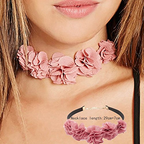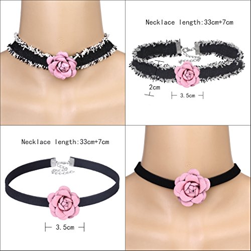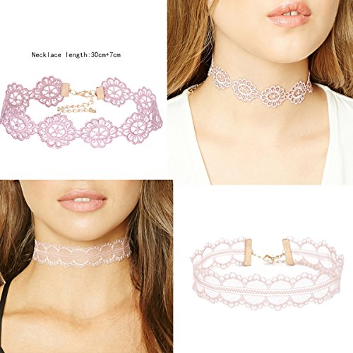 Tpocean 14 PCS Double Layer Lace Velvet Choker Set Necklace Leather Pink Floral Choker for Women Girls Teens Party Choker Jewelry Set Gifts