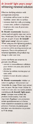 -. Feature : Light Years Away Whitening Renewal Solution was launched by the design house of Dr.Brandt / It is recommended for casual wear / Light Years Away Whitening Renewal Solution by Dr.Brandt for Unisex - 3.9 ounce Solution