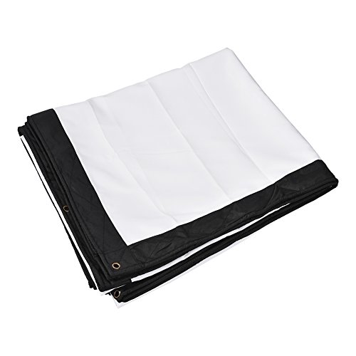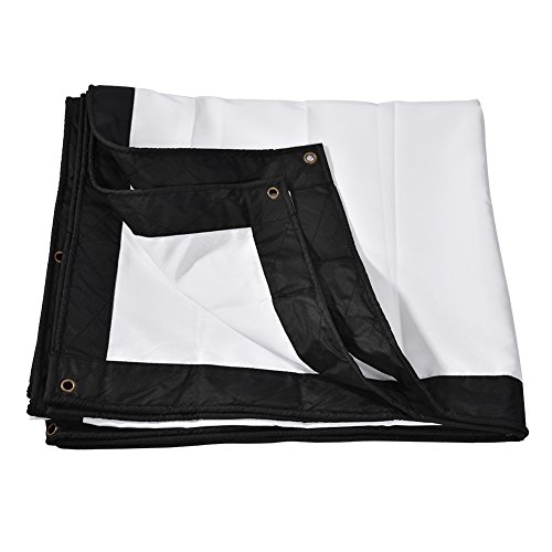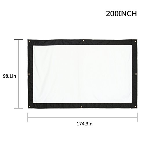 Studio : VGEBY Publisher : VGEBY Product Description This 16:9 projector screen has extremely low reflectivity and high average values of the projection display. 200 inch super projection screen provides us a perfect flicker-free visual enjoyment with optimal crystal clear image and color reproduction. Worth your buying! Features: 1. Premium Material: Made of quality canvas, this projector screen is smooth and non-deformation with low reflectivity and high projection display 2. Black Borders: 4-side black borders increases picture focus and contrast; 8 holes on? borders help a lot for easy installation 3. Super Size and Rear projection: 200' offers you great vision experience; This projection screen can be rear projected for its both sides are white 4. Suitable for home theater movies, classroom training, conference room presentation, public display, etc Specifications: Material: Canvas Size: 200 inch Screen Format : 16 : 9 Package Weight: 2890g Package Included: 1 x Projection Screen 1 x Cloth Bag Note: 1. The projection screen will be shipped by folding due to the shipping limitation. Therefore, there may be some folding traces when you receive it. You can wash it to make it smooth. 2. Please allow 0-1cm error due to manual measurement. Thanks for your understanding.
