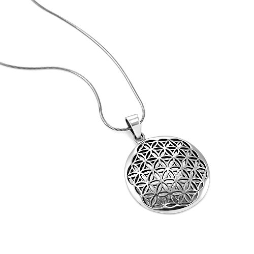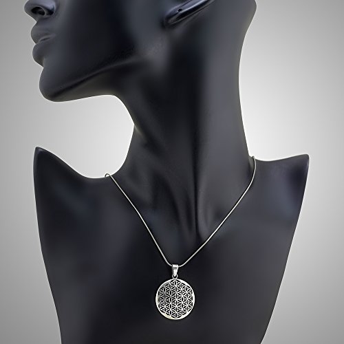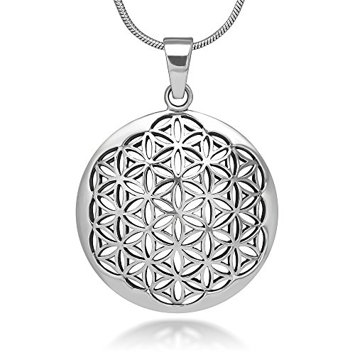 -. Title : 925 Sterling Silver Flower of Life Mandala 27 mm Circle Round Charm Pendant Necklace, 18 inches