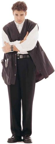 -. Feature : Black, waterproof crinkled nylon / Vest style which leaves arms free / Snap closures and two handy pockets