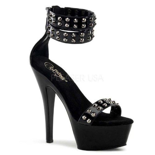 Product DescriptionHeel Height: Approx. 6' Tall. High heel sandal featuring wide ankle cuff and studded upper. Back zipper.0