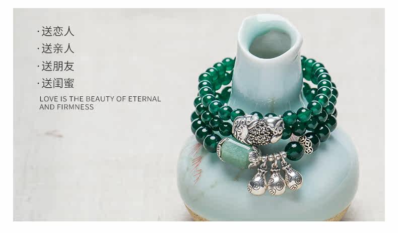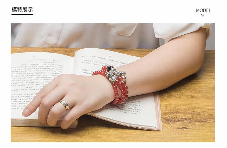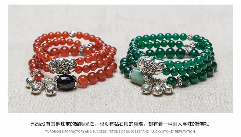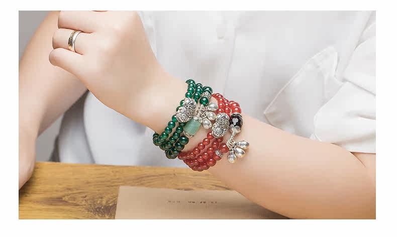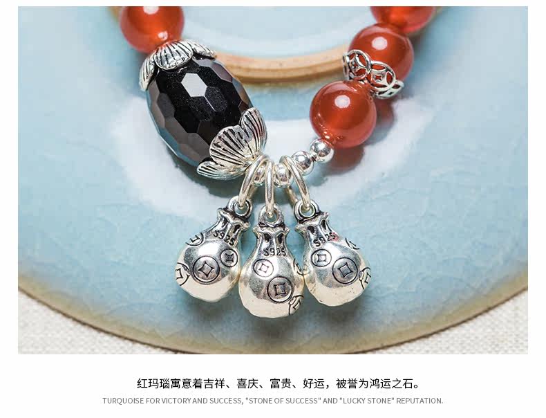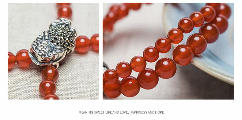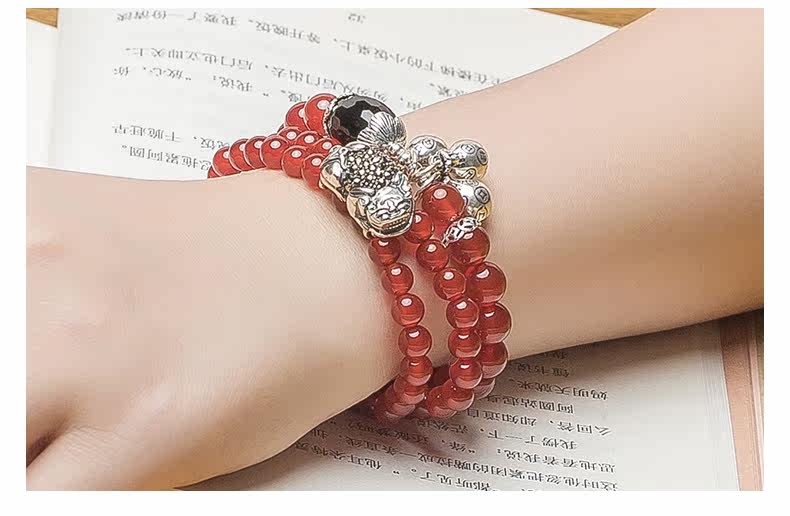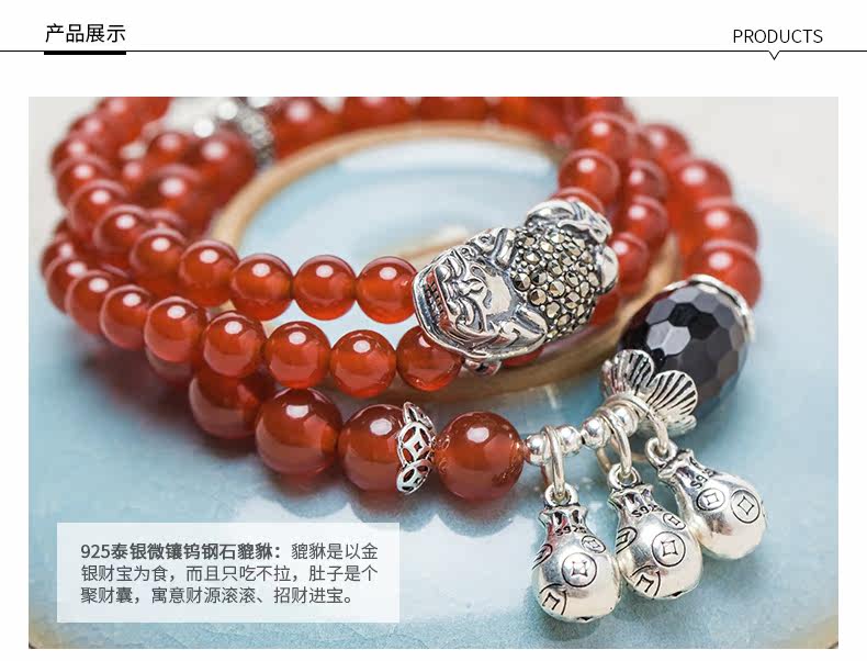 原创天然玛瑙水晶手链女925银貔貅配饰复古百搭 节日礼物