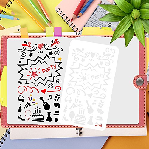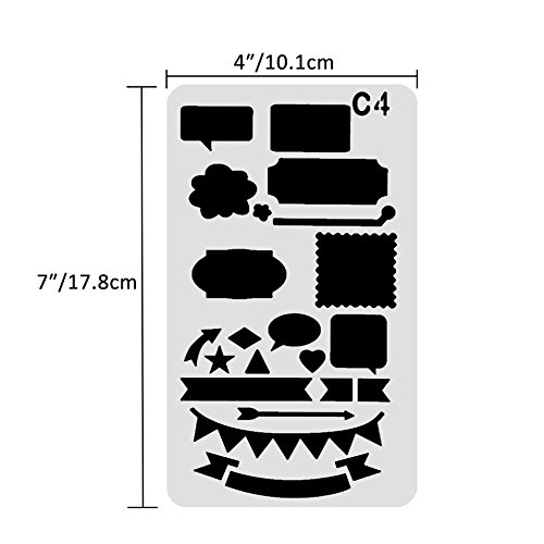 - SIZE: Stencils (4" x 7") are designed to fit inside of most A5 Notebook / Organizer.