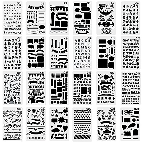 - BULLET JOURNAL STENCIL SET: 24 different bullet journal stencils are designed for you to create your perfect daily, weekly & monthly spreads.Include christmas day patterns,meets your basic painting needs.