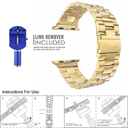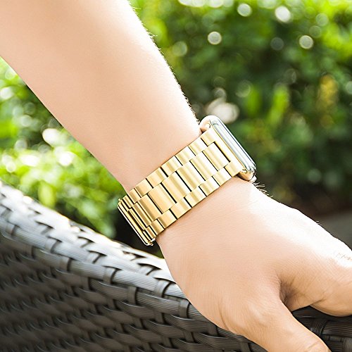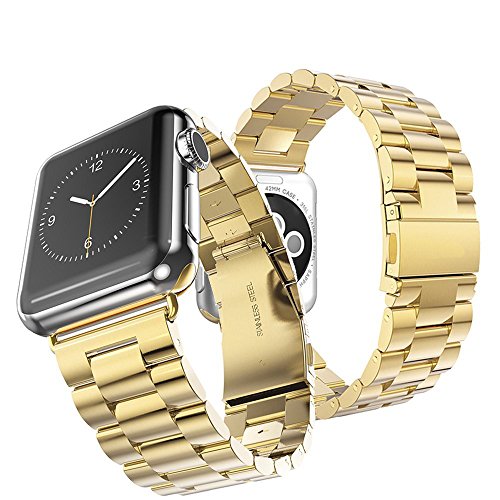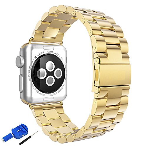 Apple Watch Band Stainless Steel 42 Gold for iWatch, Honest kin Metal Replacement Strap Classic Polishing Link Bracelet with Double Button Folding Clasp for Apple Watch 42mm Series 1 Series 2