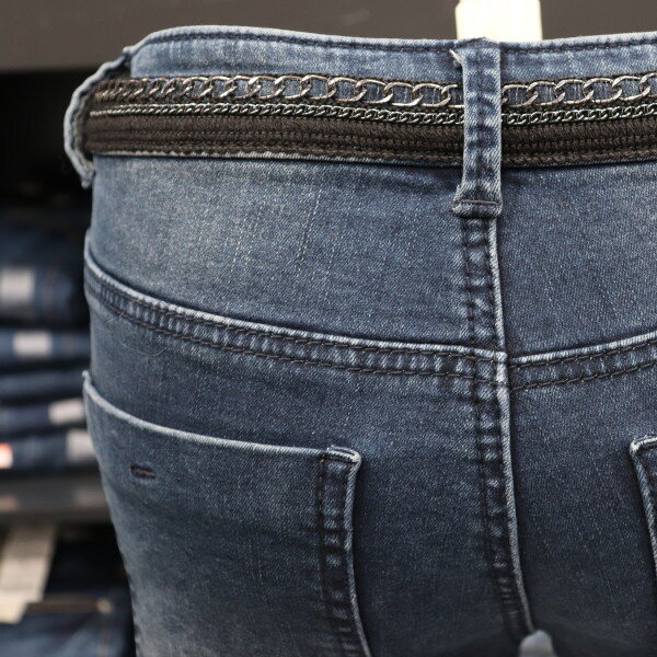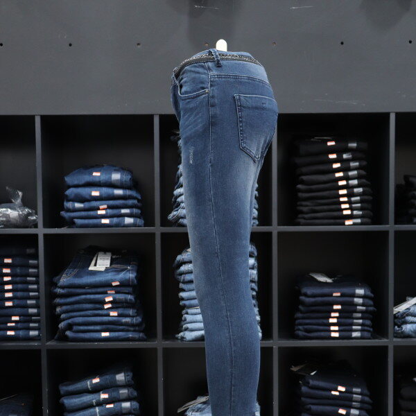 겟유즈드의 밑위가 편안한 차분한 미디엄 톤의 기모 컴포트 라이즈 스키니 핏 데님입니다.캣브러시와 기스구제로 기본워싱의 베이직 아이템입니다.허리 부분에 체인 레이스 테이프 장식으로 포인트가 되는 디테일이 있는 제품입니다.