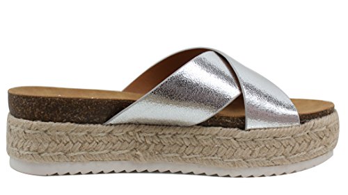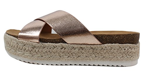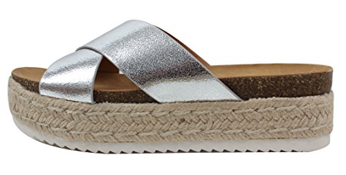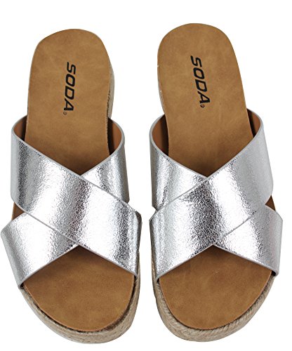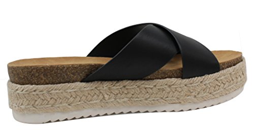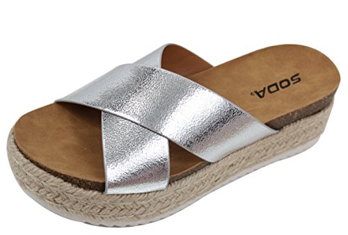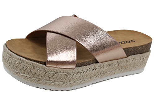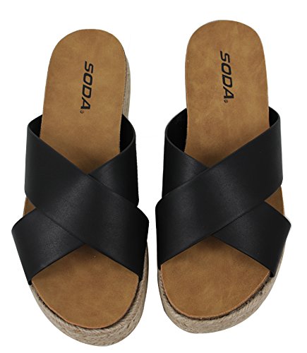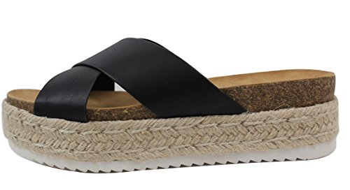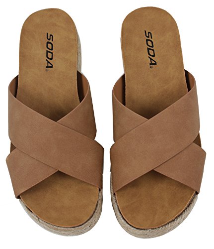 Soda Women's Open Toe Criss Cross Espadrille Flatform Wedge