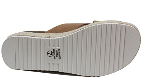 Product DescriptionEspadrille platform wedge featuring an open toe, faux leather crisscross straps, and flatform approx 1 1/2" to 2 1/4 ".0