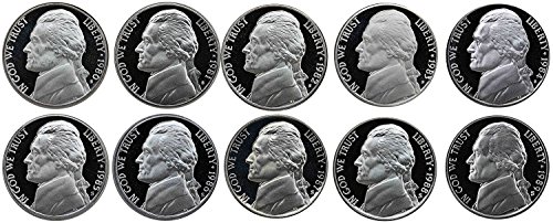 1980 S - 1989 Jefferson Nickel Gem Proof Run 10 Coins US Mint Decade Lot Complete 1980's Set Proof