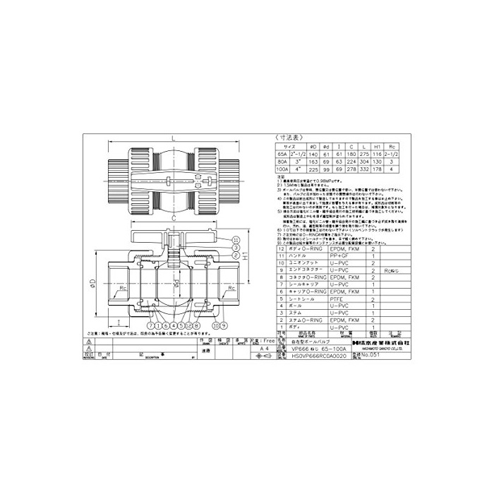 원본상품명: HSバルブ U-PVC HSボルバルブ VP666 ねじみ式(自在型) 接口 65A 型式VP666N65