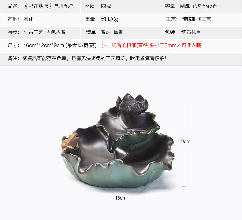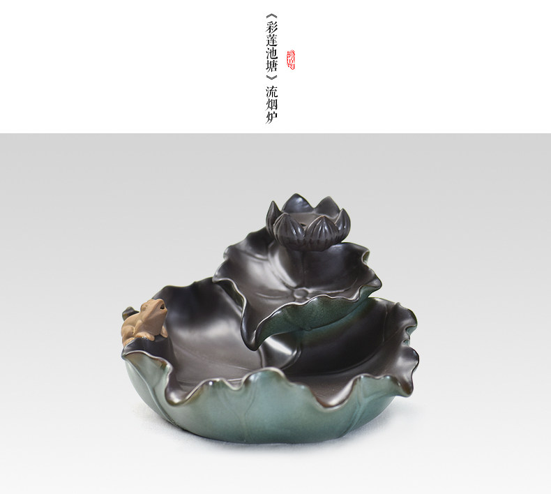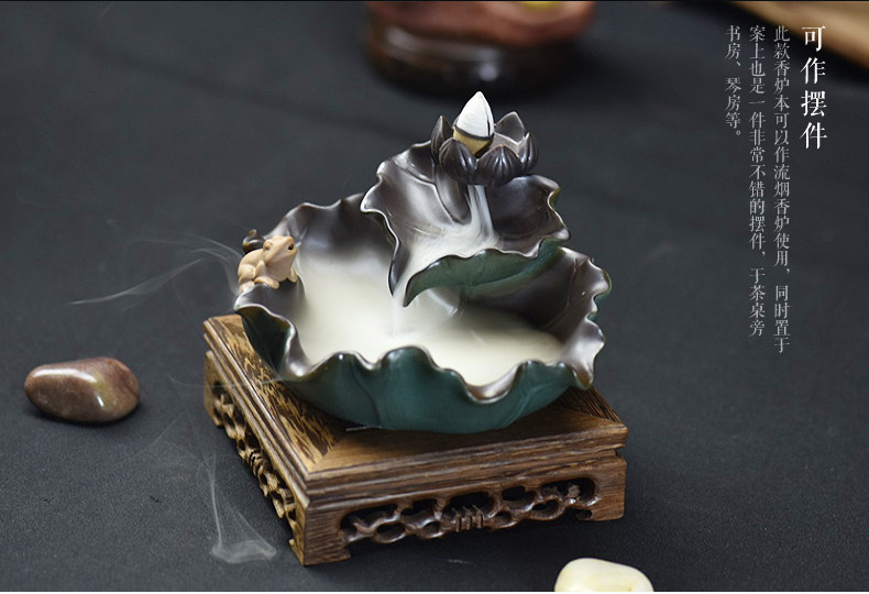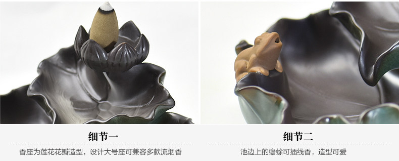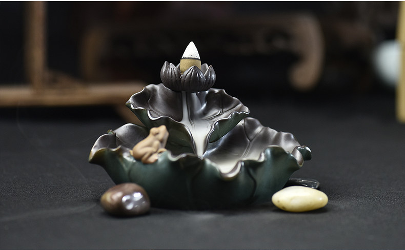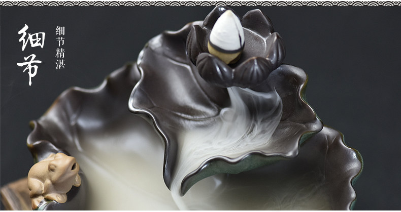 仿古倒流香炉陶瓷创意莲花蟾蜍线香插观赏香薰炉摆件沉香炉