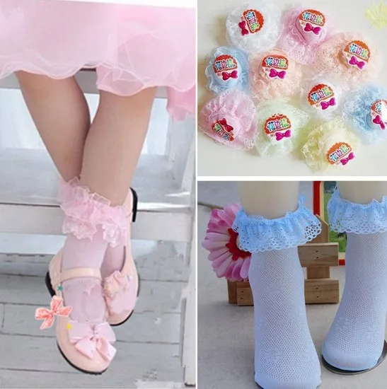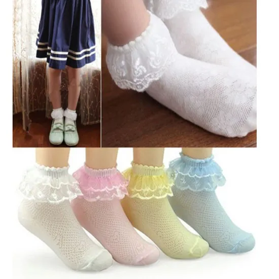 4 Pairs Retro Lace Ruffle Frilly Ankle Short Socks Summer Cozy Breathable Girls Princess Mesh Cotton Sock