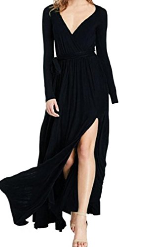 -. Title : Nicellyer Women Cut Out Long Sleeve Solid Deep V-neck Evening Party Dress Black S