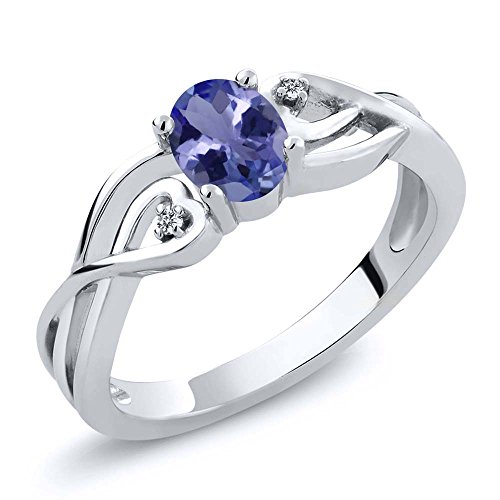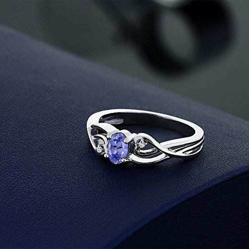 -. Title : Sterling Silver Oval Natural Blue Tanzanite and White Diamond Ring (0.46 cttw, Available in size 5, 6, 7, 8, 9)