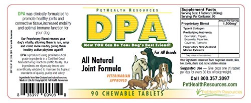 Dog pain relief formula can take years off your dog's legs and get your best friend running and walking the way they did years ago. Dog Pain Away is a specially formulated, all-natural joint supplement to make your dog's pain disappear. Utilizing a unique proprietary blend of Type II Collagen, New Zealand marine extracts, and a revitalizing blend of herbs and enzymes, Dog Pain Away is an all-natural blend to prescription drugs. As veterinary services have improved, dogs are living longer and longer, and suffering more and more from the joint pain and arthritis that comes with old age. Dog Pain Away also treats decreased flexibility and movement, the wearing down of cartilage, increased synovial fluid production, and inflammation. Each ingredient was carefully selected and validated to optimize your dog's joint function and provide the building blocks for healthy joint structures. Take the years (and dog years) off your pup's legs with Dog Pain Away. Made in the USA.Feature