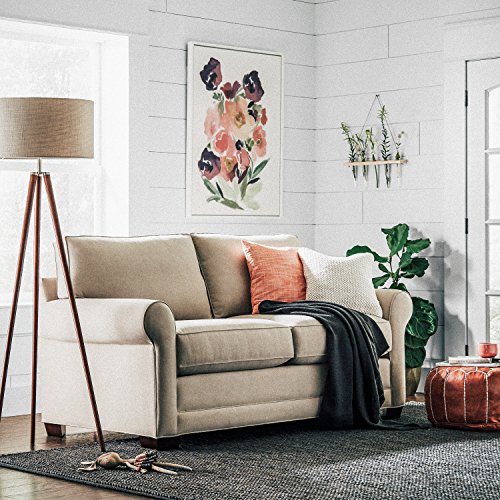 An Amazon brand - This lamp features a contemporary silhouette with its tripod legs, but is softened by warm wood tones, a classic drum shade and a fabric cord. With this combination of modern and classic influences, this lamp will blend with your existing style.Feature