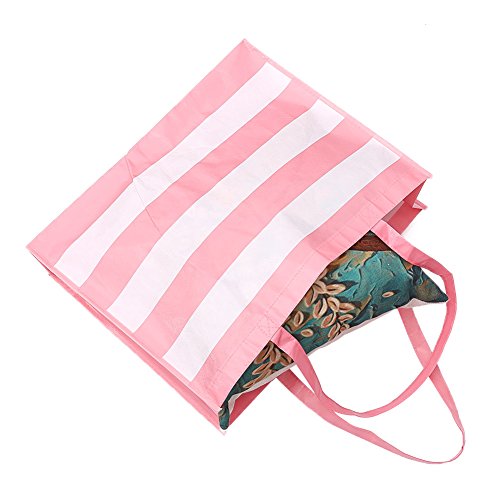 Women Casual Striped Shopping Shoulder Handbag Canvas Bag Tote Purse with Button