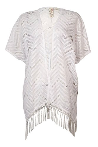 Miken Women's Lace-Fringe Trim Kimono Swimsuit Cover-Up