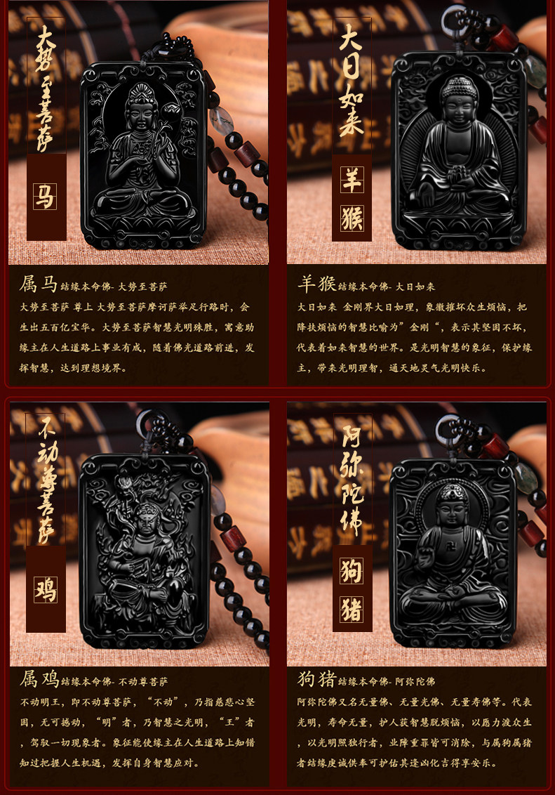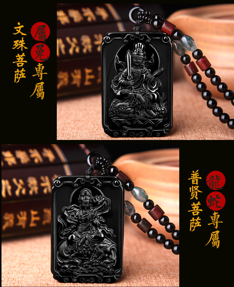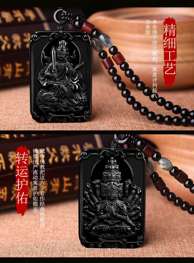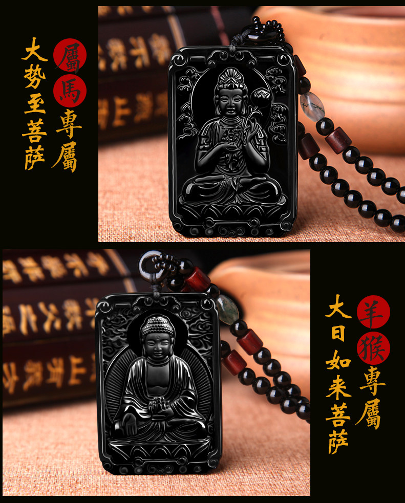 开光黑曜石方块八大守护神本命佛吊坠 生肖属马-大势至菩萨