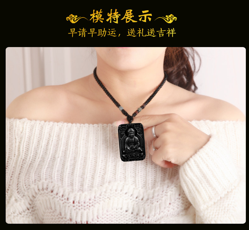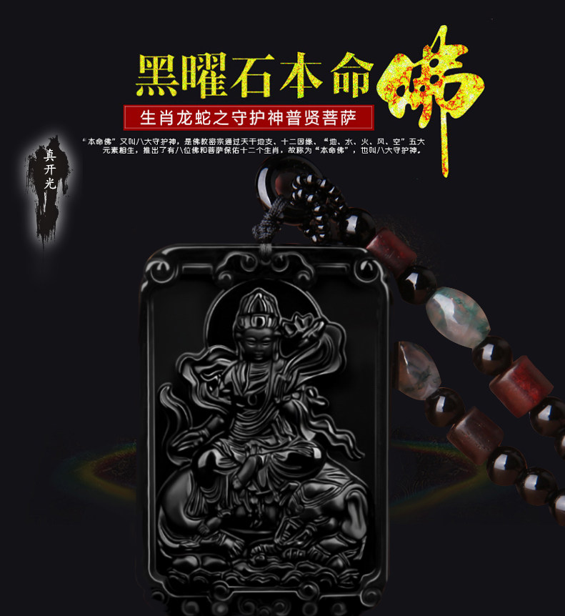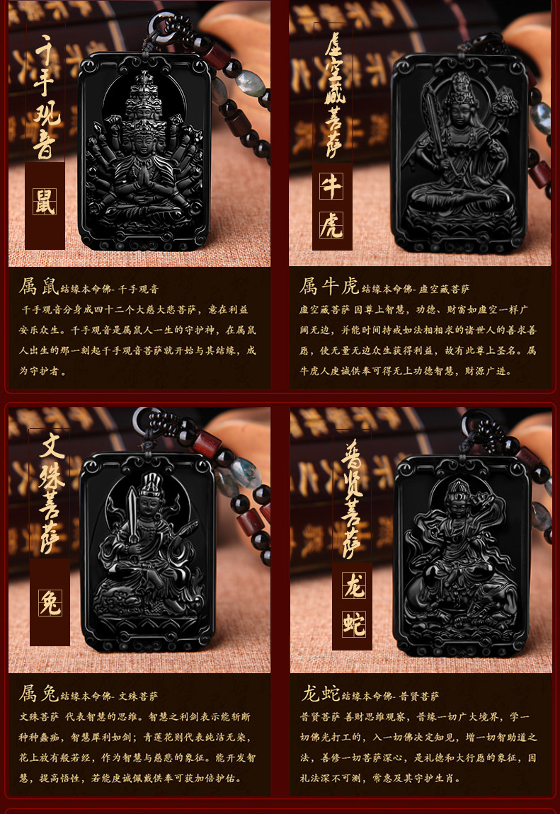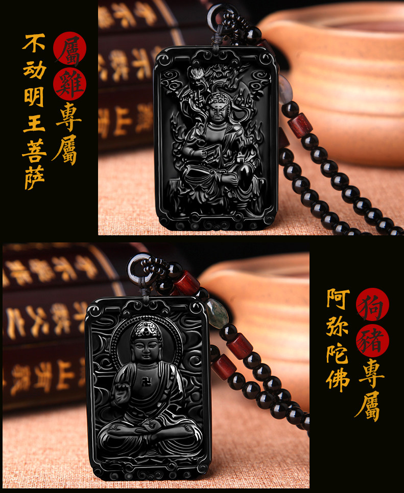 开光黑曜石方块八大守护神本命佛吊坠 生肖属马-大势至菩萨