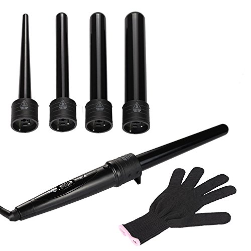 5 in 1 Curling Wand Set, FLYMEI Curling Iron Hair Curler Set with 5 Interchangeable Ceramic Barrels and Heat Resistant Glove (Black)